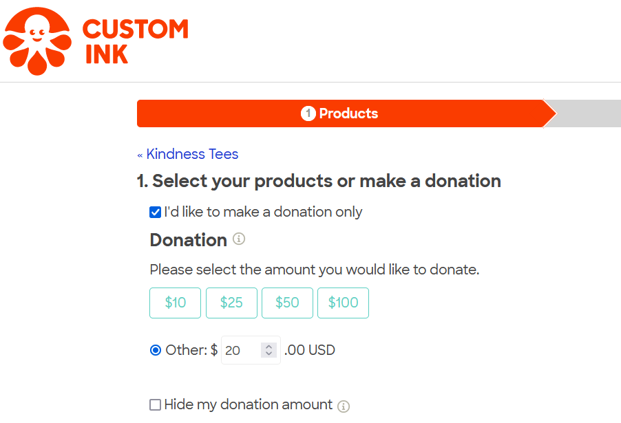 We hope you’ll head over and grab a shirt for yourself (or for others), but if you’re looking for a way to support our mission without adding another shirt to your closet, don’t worry. You can do that too! Simply click on the “Buy/Donate” button, and then on the next page, select “I’d like to make a donation only”. Then you can choose one of the preset donation amounts, or select “Other” and type in your own amount.